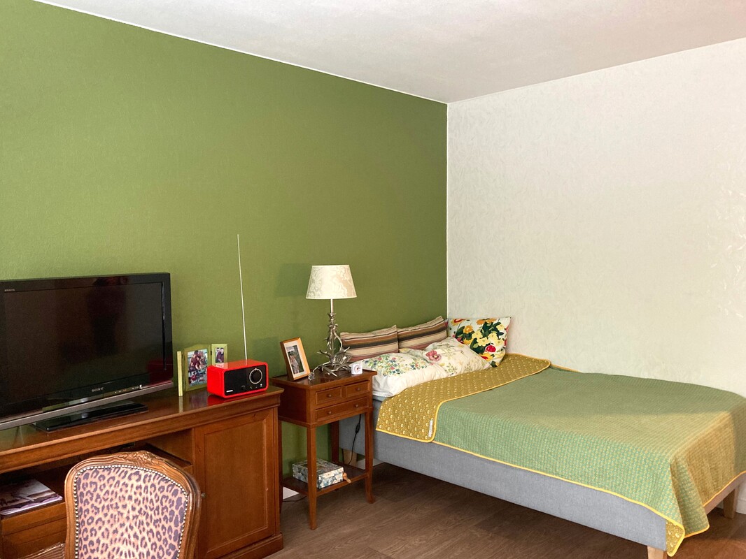 Keittokomeroon mahtuu myös pieni ruokapöytä. Olohuoneesta käynti lasitetulle länsiparvekkeelle. Kauttaaltaan siisti muovimatto, seinät tapetoitu/maalattu. Moderni, laatoitettu kylpyhuone/wc uusittu remontin yhteydessä. Eteisessä on myös tilava vaatehuone.