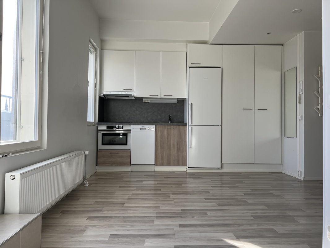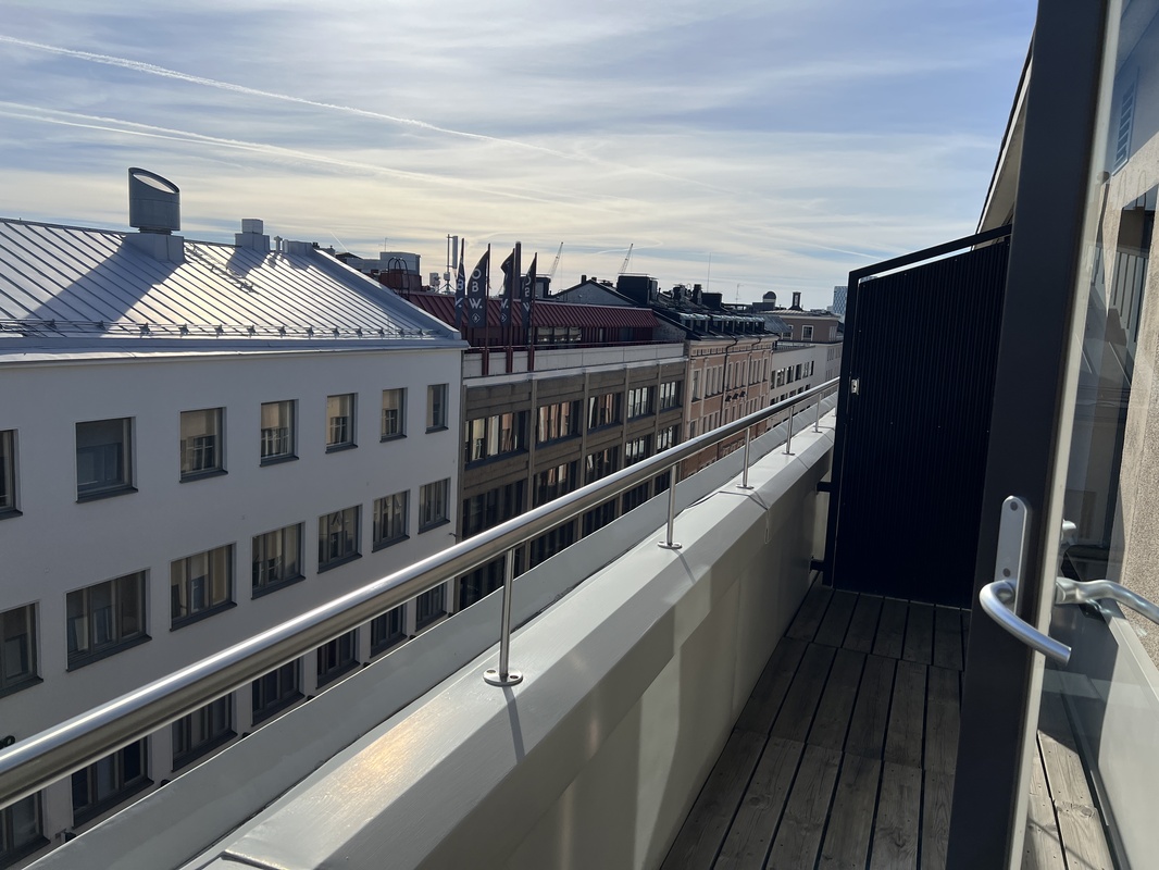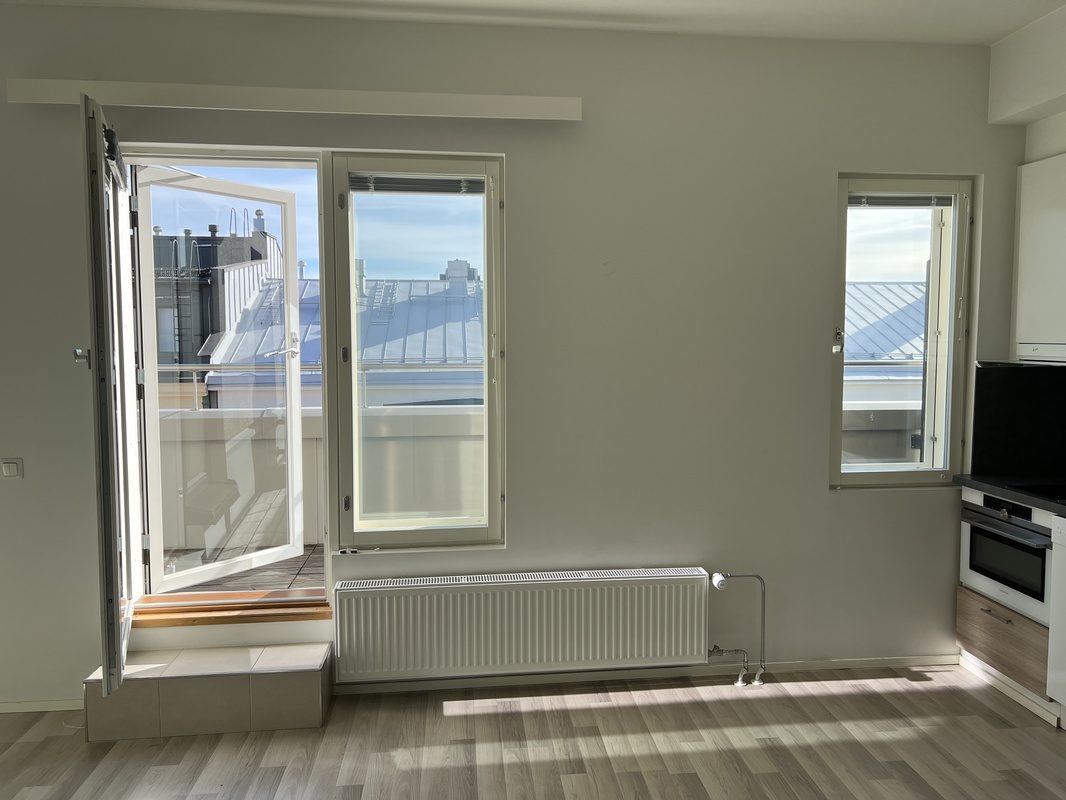 Upea ylimmän kerroksen yksiö omalla kattoterassilla ydinkeskustassa – vapautuu 1.10.2025