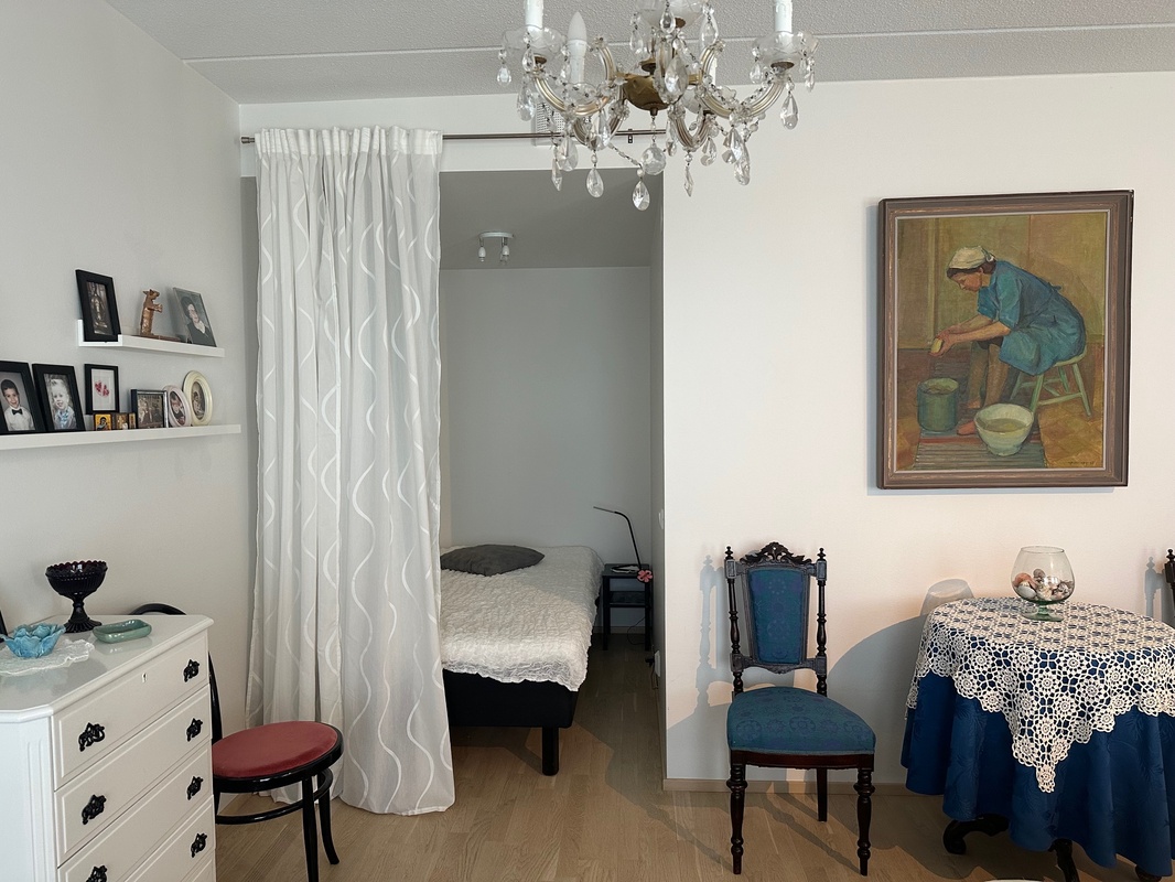 Tämä kompakti ja tilava yksiö sijaitsee talon toisessa kerroksessa. Kotiin pääsee kulkemaan kuitenkin esteettömästi. Alkovi mahdollistaa makuutilan erottamisen olohuoneesta.