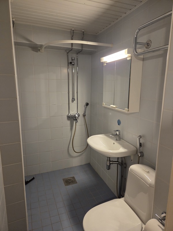 | Kylpyhuoneen kuvaus | Lattiat laatta, seinät kaakelia , Wc-istuin , peilikaappi, rättipatteri, lattialämmitys |
