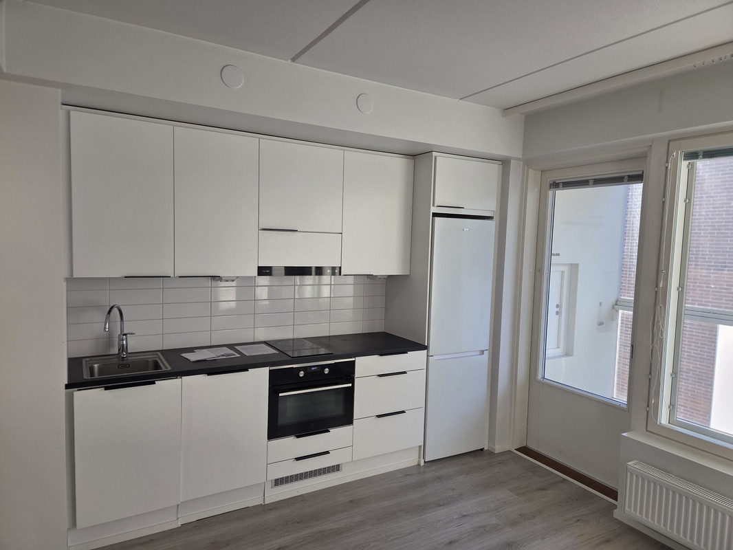 | Keittiön varustelu | Kaapistot, erillinen uuni, keraaminen liesi, jääkaappi/pakastin, liesituuletin, astianpesukone, työtasot pinnoitettu . Seinät : maalattu. Lattia : laminaatti |