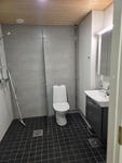 | Kylpyhuoneen kuvaus | Lattia: laatta, Seinät: kaakeli, suihkuseinä, wc-istuin, peilikaappi, allaskaappi , lattialämmitys |