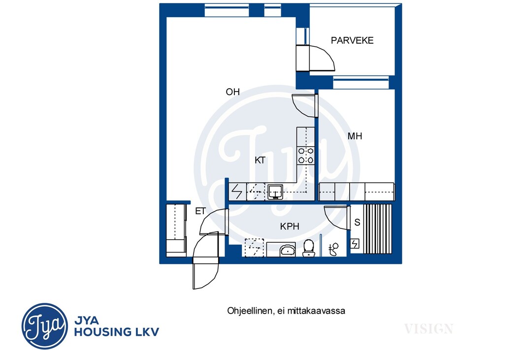 | Huoneistoselitelmä | 2 h, avok, kph/wc, s, lasitettu parveke |