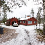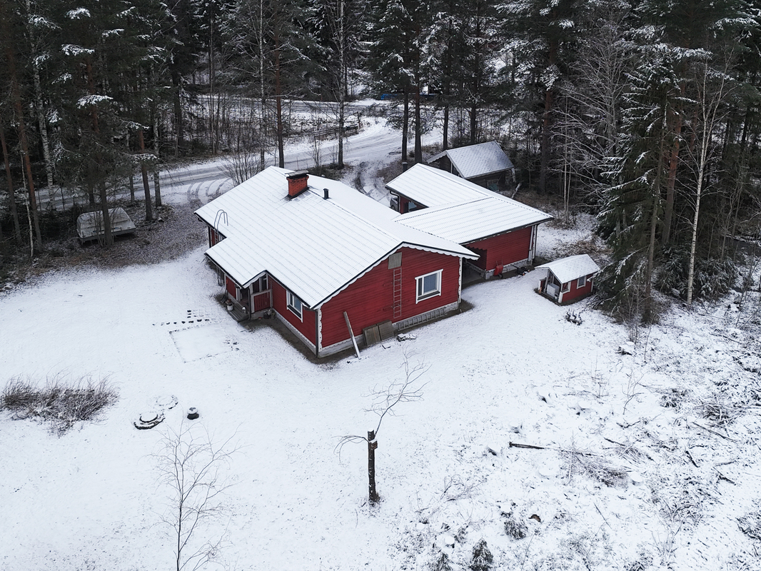 Tämä punainen puurakenteinen ja lautaverhoiltu omakotitalo sopii erinomaisesti pienen perheen kodiksi. Rakennus sijaitsee omalla 2000 m² tontilla, jonka lisäksi pihapiiristä löytyy autokatos/varasto sekä idyllinen hirsiaitta.