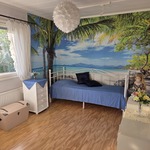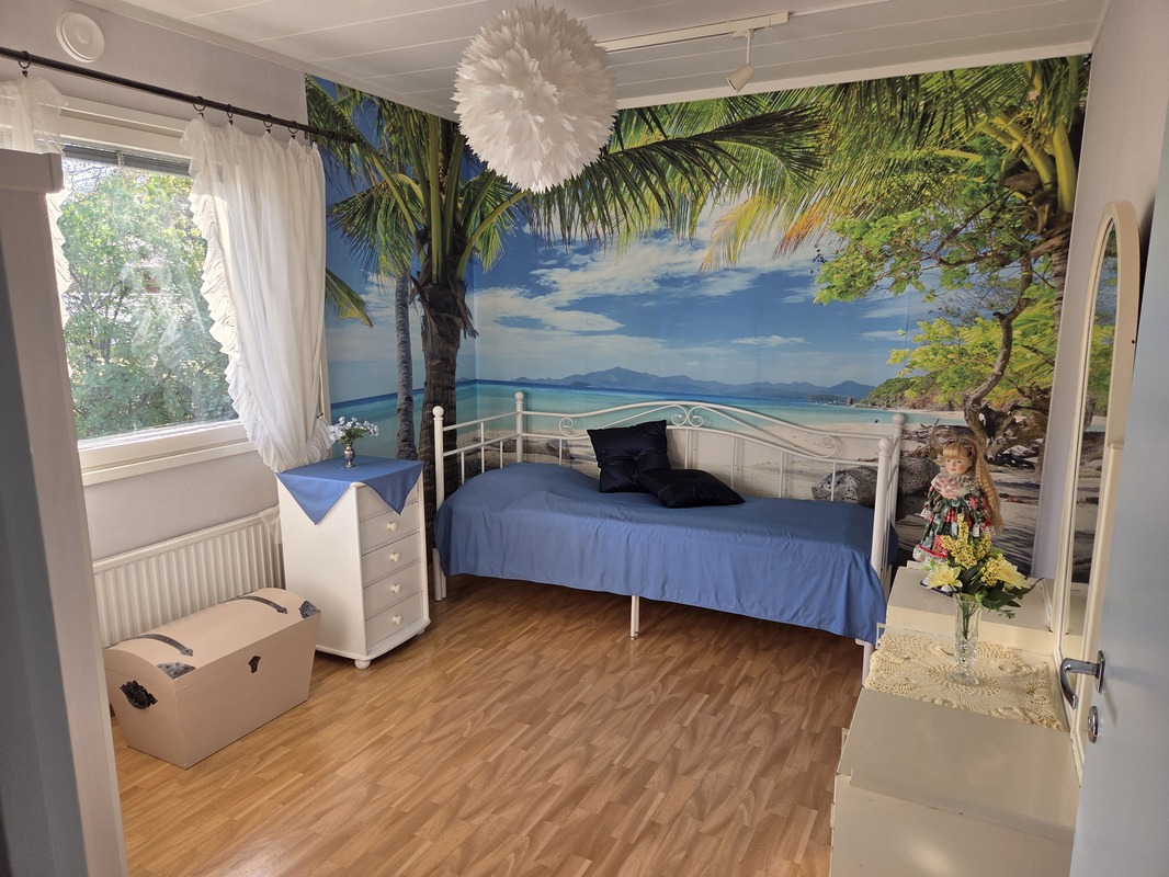Makuuhuoneen kuvaus | Seinät 1 tapetti muu maalattu , Lattia. muovimatto |