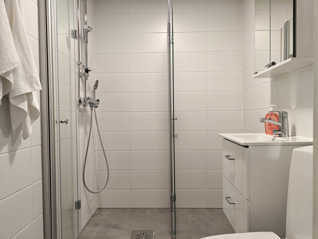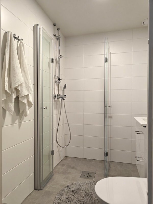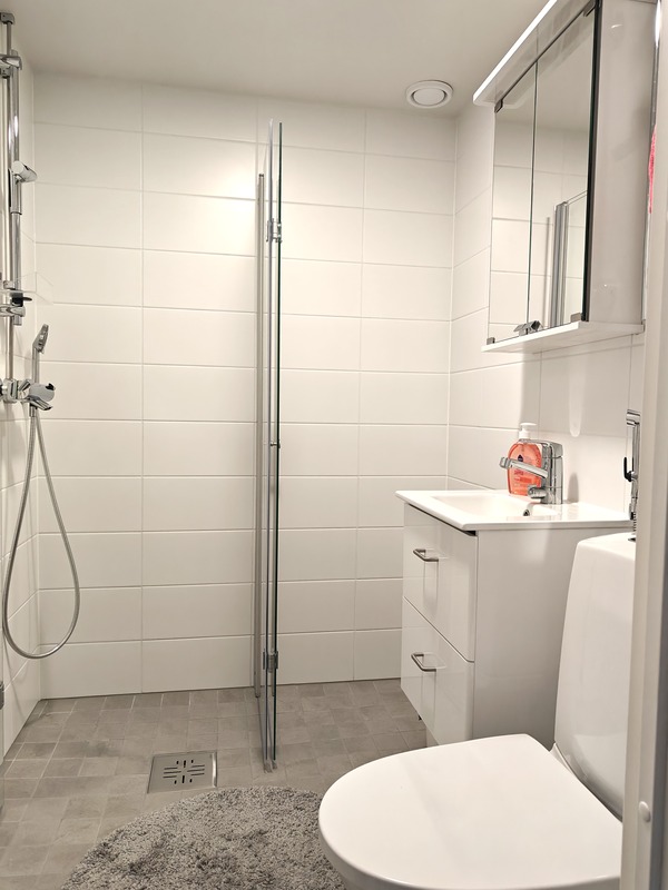 Hyvä yhtiö, uusi kylpyhuone valmistunut juuri putkiremonttin yhteydessä.