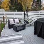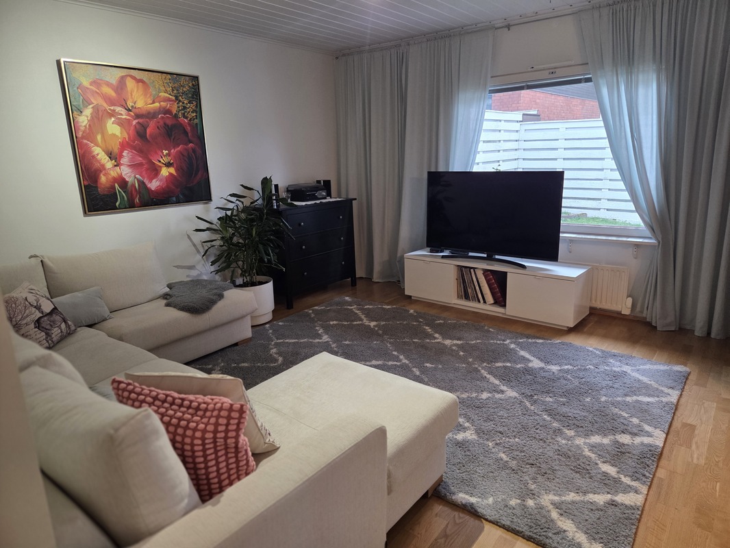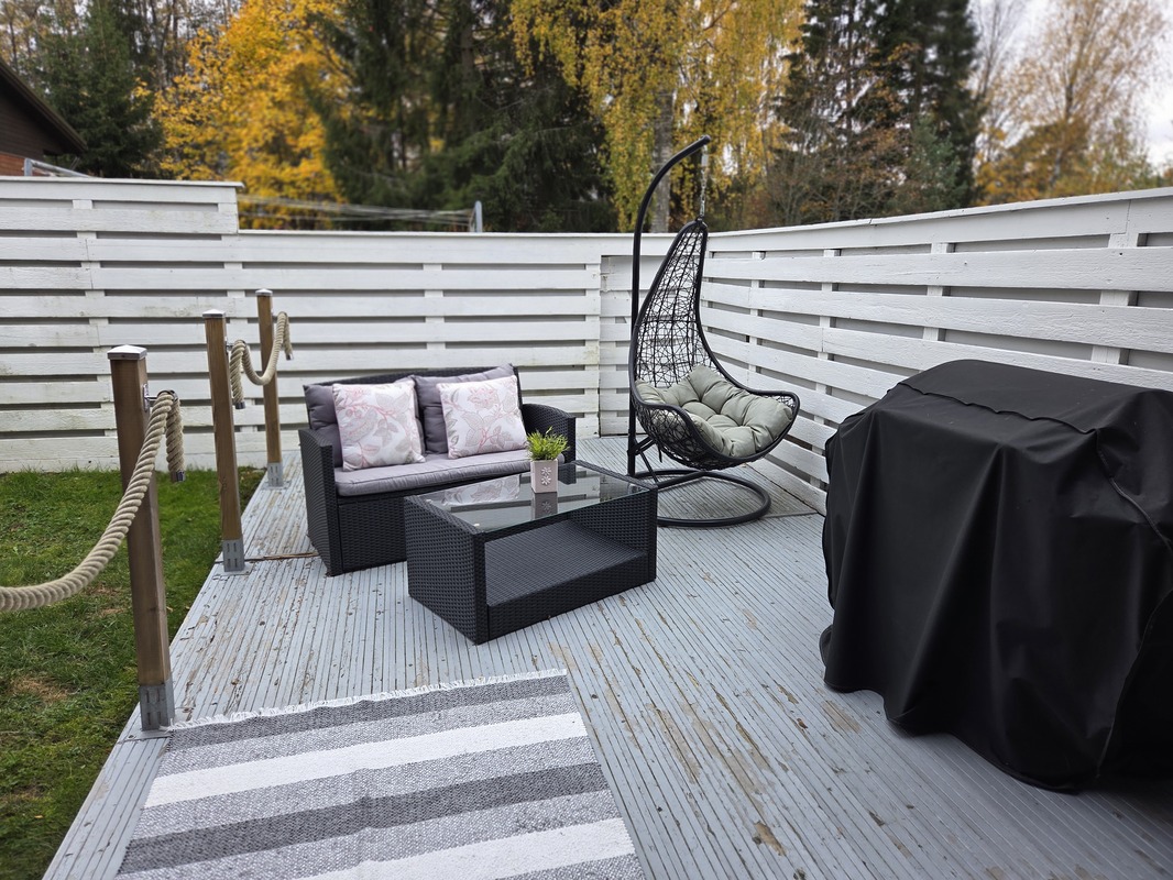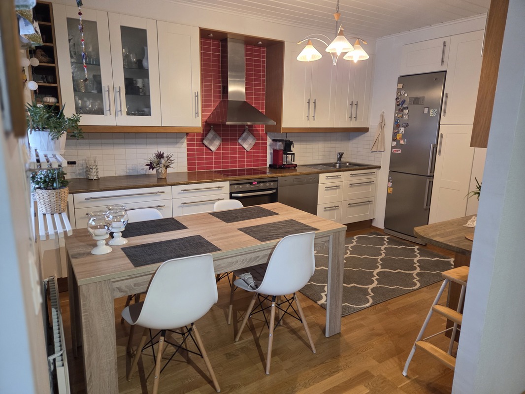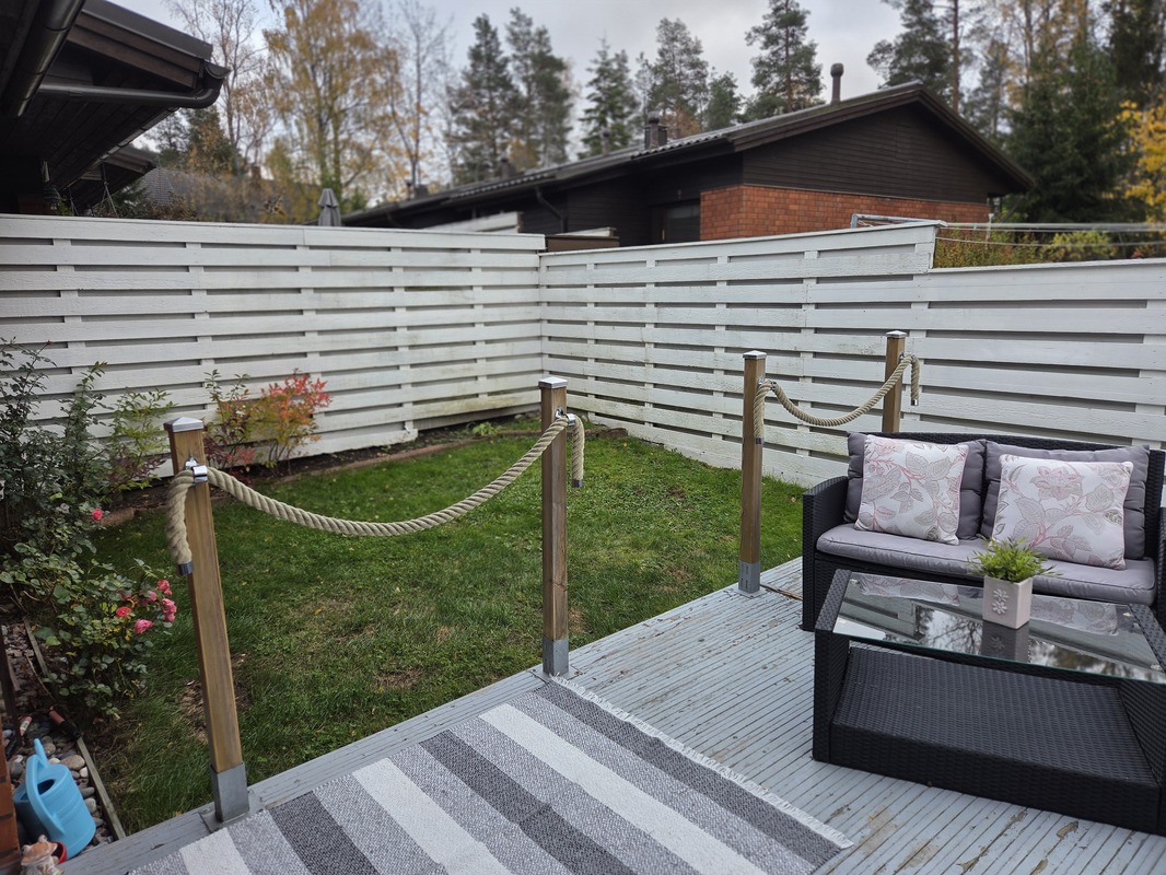 Kodin sydämen muodostavat valoisa olohuone, ruokailutila ja keittiö, jotka yhdessä luovat avaran ja kutsuvan tilan arjen hetkiin. Olohuoneesta on käynti omalle aidatulle pihalle, jossa on valmiina terassi – täydellinen paikka aamukahville tai kesäiltojen rentoutumiseen.