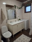 Kylpyhuoneen kuvaus | suihku, peilikaappi, allaskaappi, seinät :laatta, lattia; laatta |