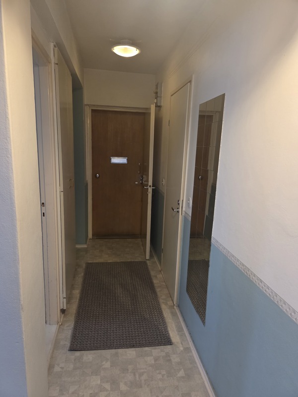 | Makuuhuoneen kuvaus | Lattiat: muovimatto, seinät: maalattu, kaapistot |