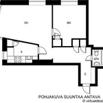 | Keittiön varustelu | Remontoitu, tehty aukko kk:sta olohuoneeseen, jossa taso, jääkaappi/pakastin, sähköliesi/uuni. |