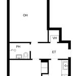 Suositusta taloyhtiöstä vuokrattavaksi asunto, jossa on olohuone, makuuhuone, kylpyhuone, keittiö, parveke ja pieni vaatehuone.
