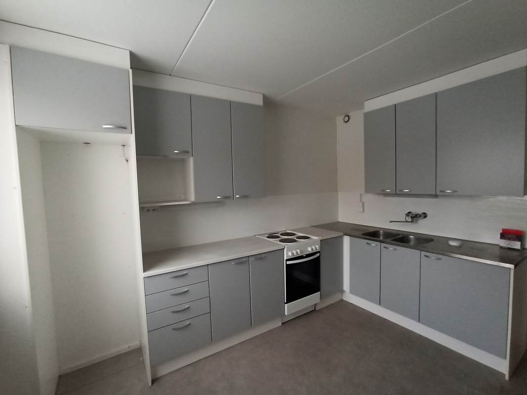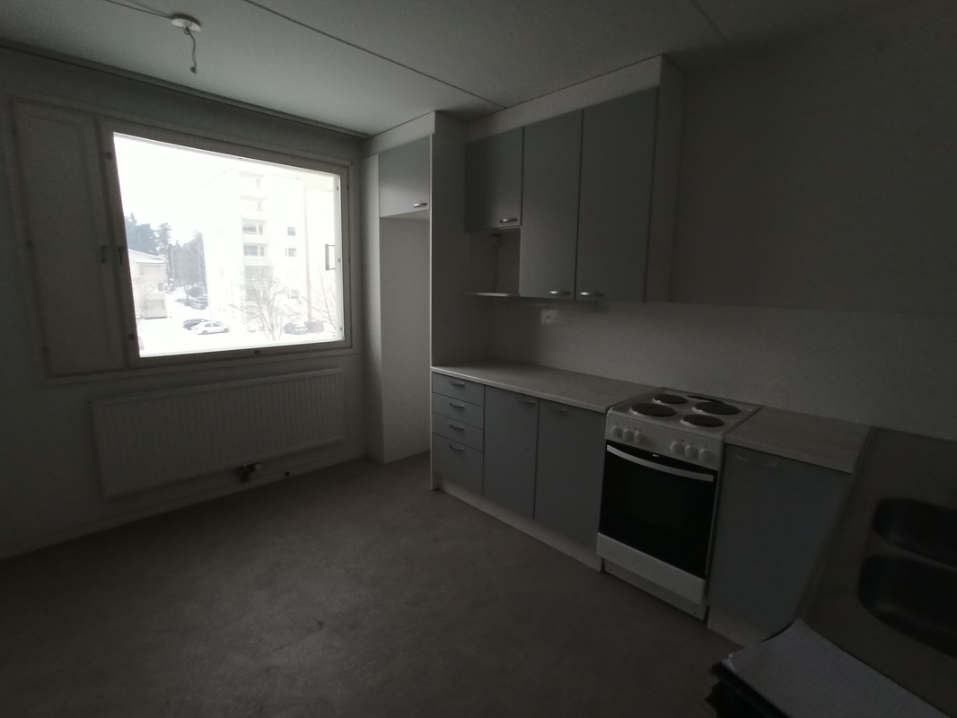 | Keittiön varustelu | Lattiat muovimatto, seinät maalattu. Kaapistot, liesi, uuni, pesuallas. Ei jääkaappia |