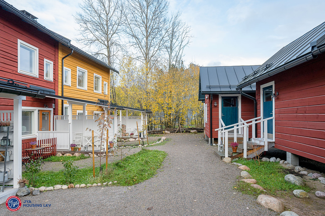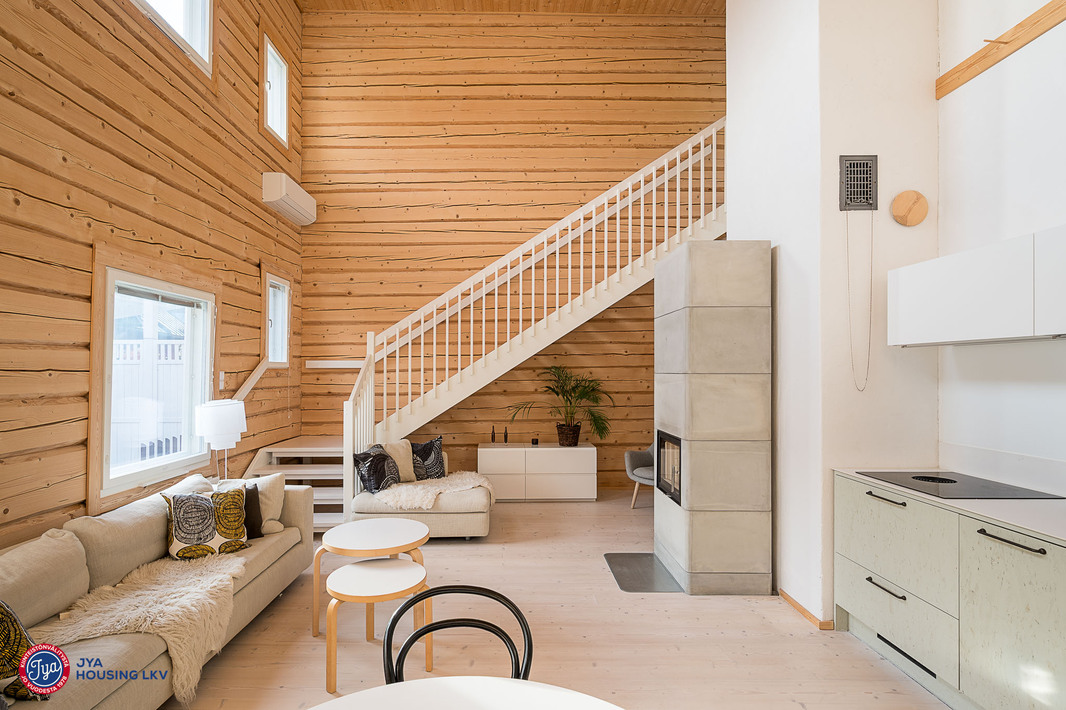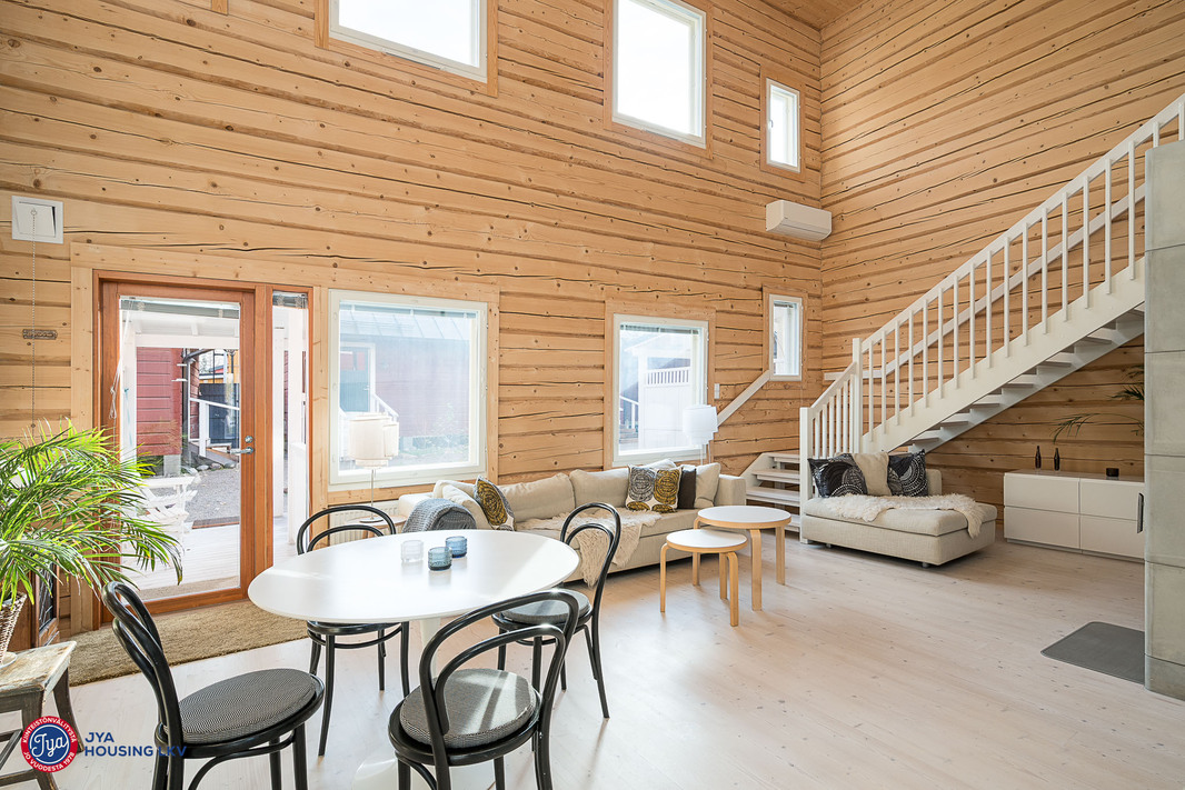 | Lämmitys | Kaukolämpö, ilmalämpöpumppu, varaava takka. Asuntokohtainen aurinkovoimala. Pihatalossa sähköpatteri. |