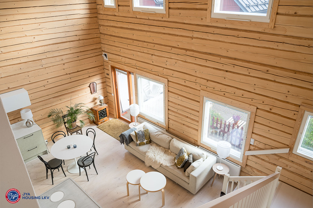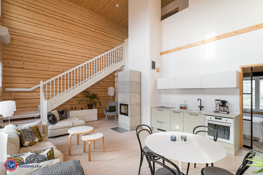 Myynnin kohteena on asunto 78,1 m ² sekä pihatalo 12,7 m². Asunnon eteinen on tilava. Eteisestä avautuu upea noin 6 metriä korkea olohuone, jossa on lämpöä ja tunnelmaa tuova varaava puhdaspolttoinen takka. Olohuoneeseen yhdistyy avokeittiö tarvittavin varustein. Olohuoneesta on kulku terassin kautta yhtiön sisäpihalle, jossa sijaitsee pihatalo ja yhtiön yhteinen pihasauna. Pihatalo toimii esim. askartelu-, harrastus- tai työtilana ja lämpiää sähköpatterilla.