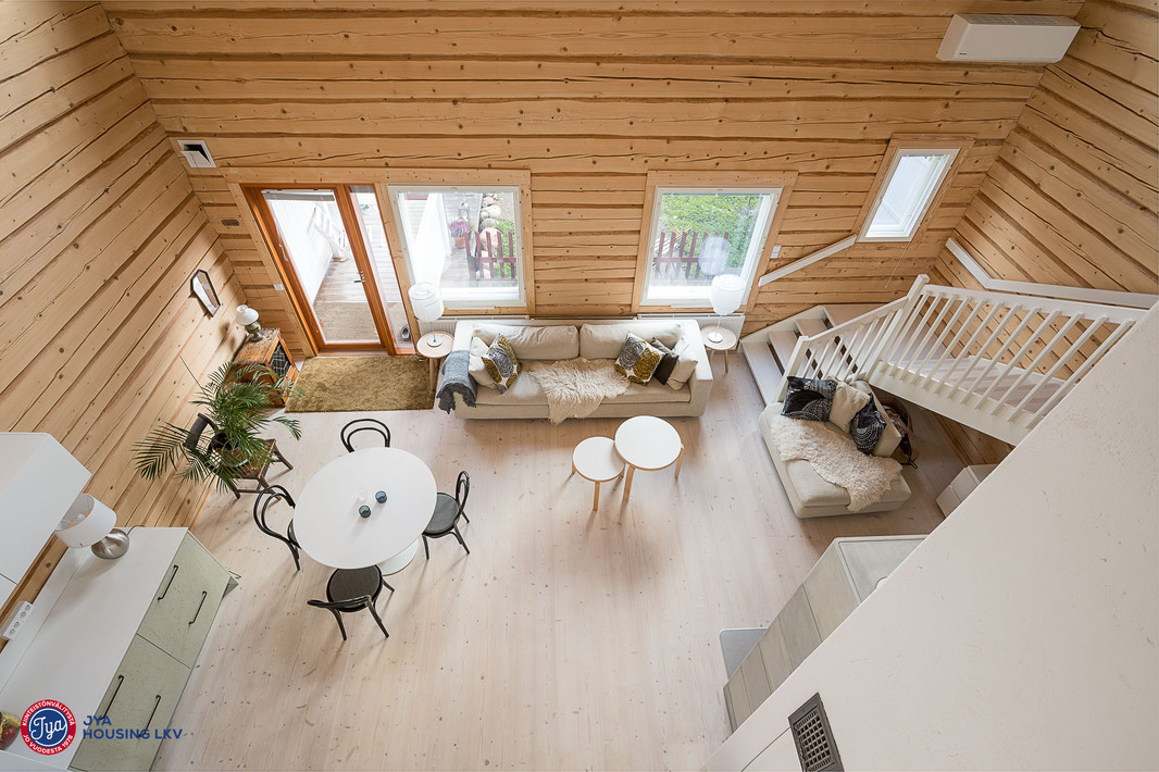 1. ja 2. krs sekä pihatalo                         Olohuone / avokeittiön huonekorkeus noin 6 m