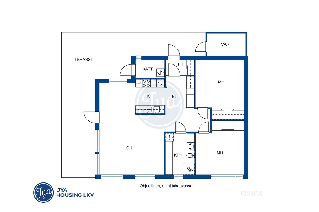 | Huoneistoselitelmä | 3 h, k/rt, kph/wc, terassi, varasto |