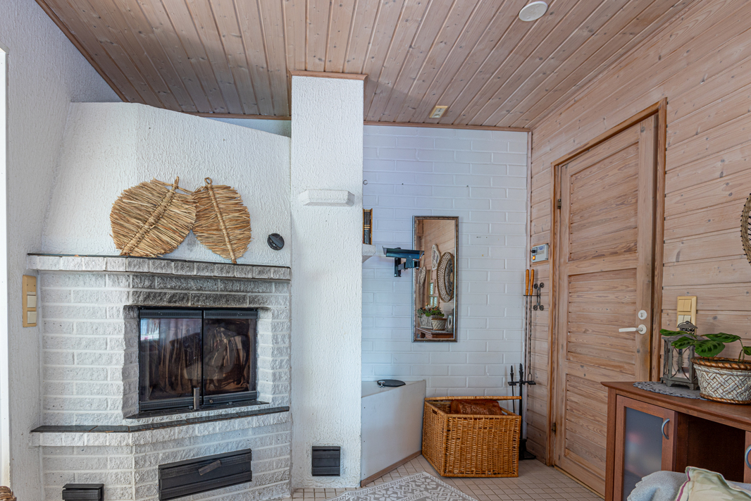 Kolme makuuhuonetta sekä takkahuone varaavalla tulisijalla tekevät kodista lämpimän ja käytännöllisen. Uusittu kodinhoitohuone omalla sisäänkäynnillä helpottaa arkea ja lisää asumisen mukavuutta.