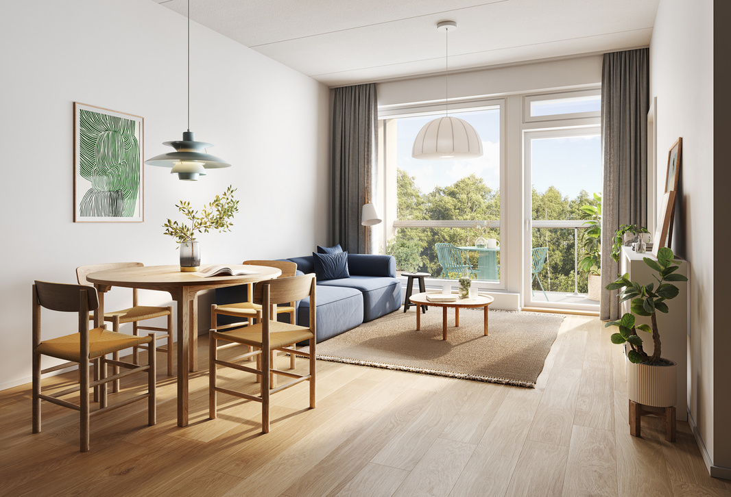 Tässä kolmen huoneen läpitalon asunnossa on hyvin suunnitellut neliöt, makuuhuoneet erillään toisistaan, hyvän kokoinen eteinen ja avara valoisa olohuone avokeittiöllä sekä tilava 10 m² lasitettu parveke. Vesikiertoinen lattialämmitys tuo vapautta sisustamiseen, koska pattereita ei ole. Huonekorkeus ja isot ikkunat tuovat avaruutta ja valoa kotiin.