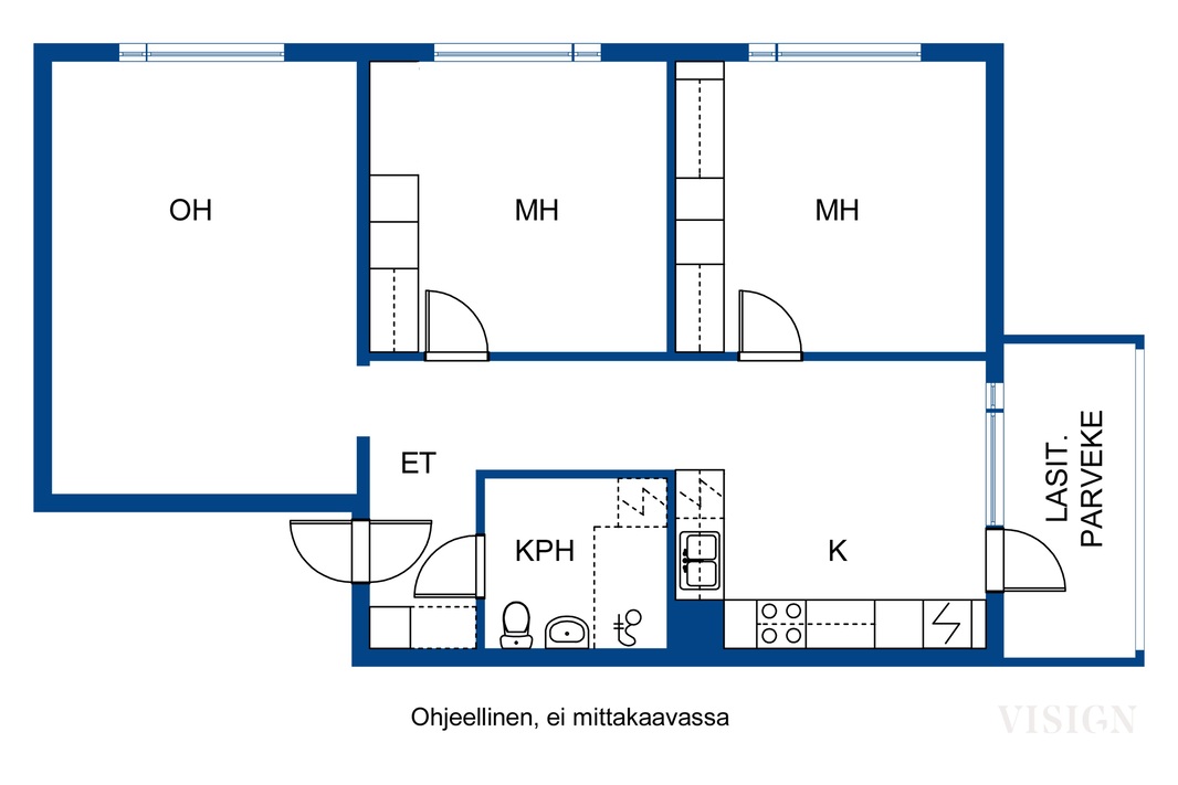 Huoneistoselitelmä | 3h, k, kph/wc, lasitettu parveke |