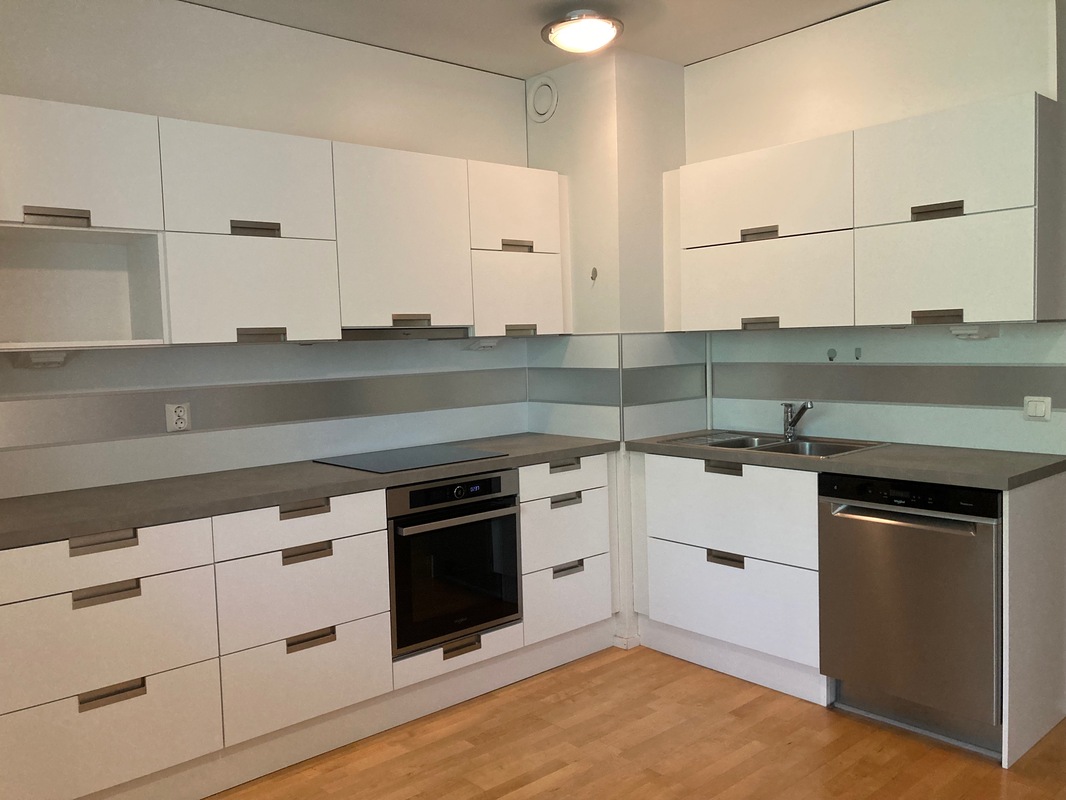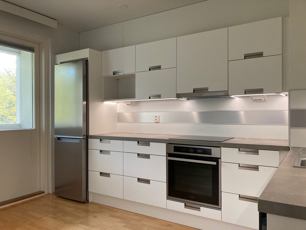 Keittiön varustelu | Tosi tilava, 2022 täysin uusittu moderni keittiö. Samalla myös keittiön valaistusta on parannettu. Varusteena jää-/pakastinkaappi, keraaminen liesi, erillisuuni, astianpesukone. Keittiöstä käynti lasitetulle parvekkeelle. |