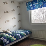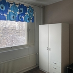 | Makuuhuoneen kuvaus | Isommassa makuuhuoneessa kiinteät kaapistot. Pienemmässä irto vaatekaappi sekä seinähyllyt, jotka jäävät paikoilleen. |