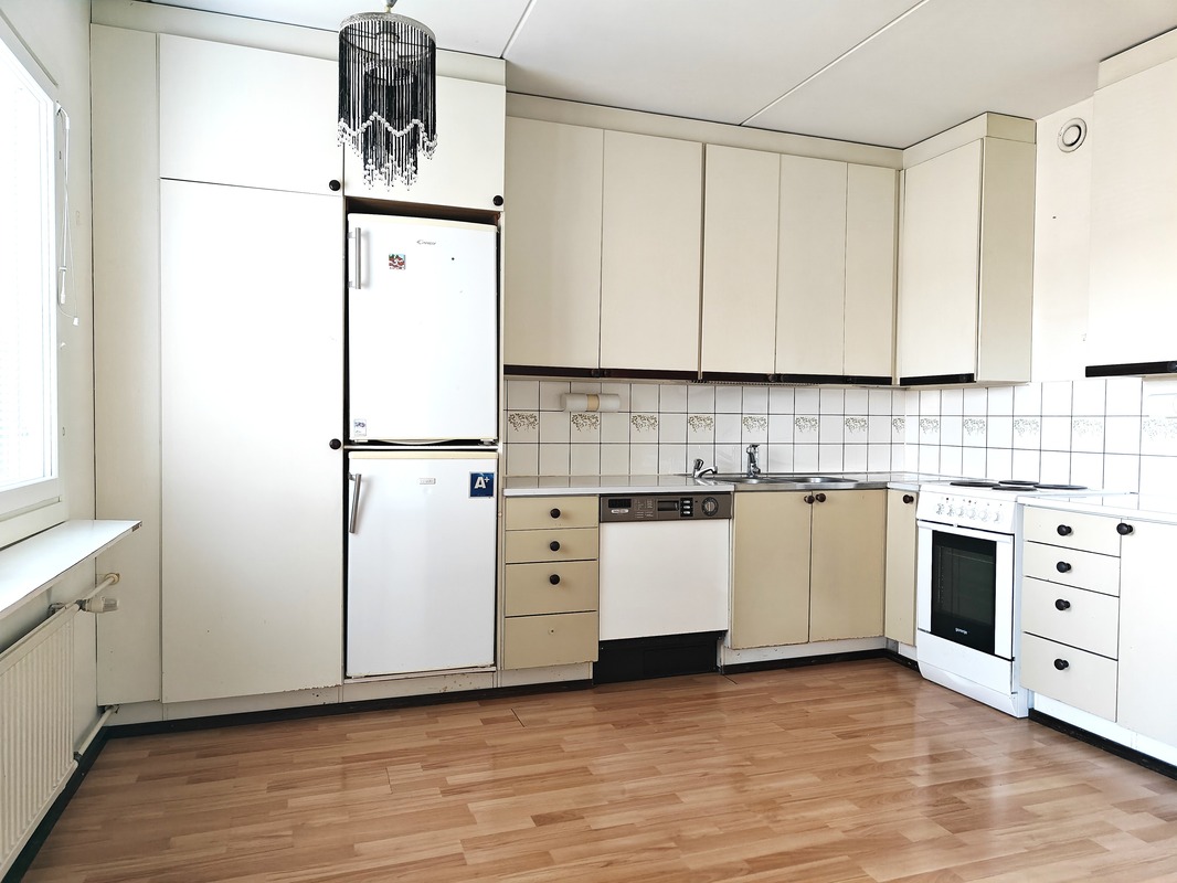 Keittiön varustelu | Osa kodinkoneista epäkunnossa. |