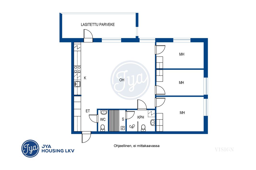 4h, avokeittiö, kph, s, erill. wc, lasitettu parveke (yj 4h+k+s)298 000 €