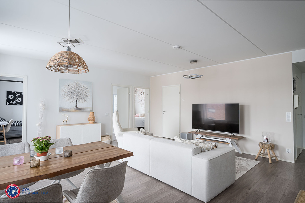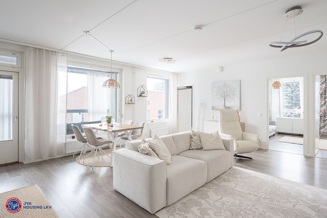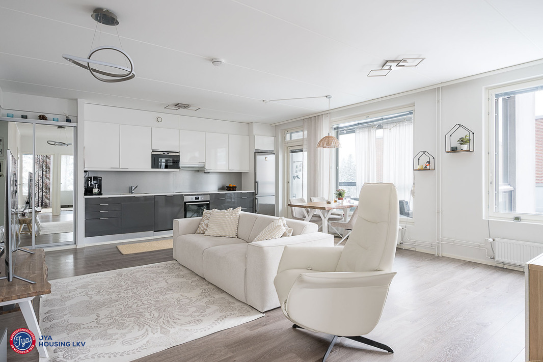 Sisääntulosta aukeaa avara yhtenäinen, tyylikäs olohuone / avokeittiö / ruokailutila. Tässä harmonisessa tilassa on kiva kokkailla ja seurustella. Tilava lasitettu parveke aukeaa olohuoneesta. Kulmahuoneisto lisää yksityisyyden tunnetta. Kaikissa makuuhuoneissa on kaapistot kuin myös eteisessä. Tunnelmallinen sauna ja kylpyhuoneessa tila myös pesutornille. Erillinen wc tuo joustavuutta perheen aamuihin.