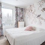 | Makuuhuoneen kuvaus | Makuuhuoneissa seinäpinnat maalattu ja yhdessä makuuhuoneessa tehosteena tapetti, lattiapinnoilla laminaatti. Kaikissa makuuhuoneissa kaapisto. |