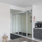 Olohuoneesta käynti lasitetulle parvekkeelle