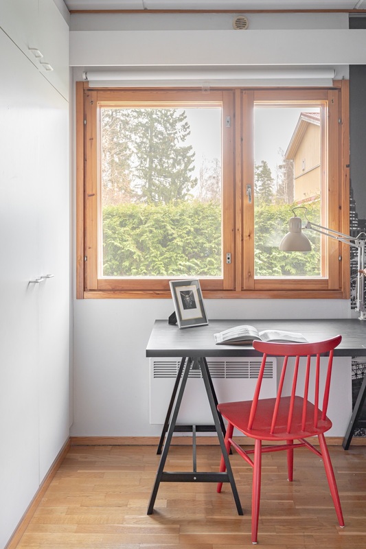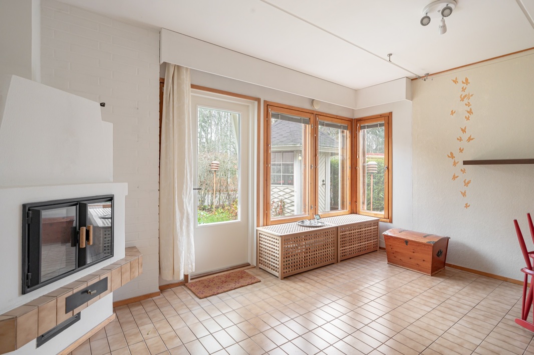 Kodikas erillistalo rauhallisella pientaloalueella. Tilat ovat kahdessa kerroksessa, erillistalo tuo omaa asumisrauhaa. Alakerrassa kaksi makuuhuonetta, joista toinen toimii myös takkahuoneena. Tästä tilasta on käynti takapihan terassille, samoin saunaosastoon. Kummassakin asuinkerroksessa erillinen wc.