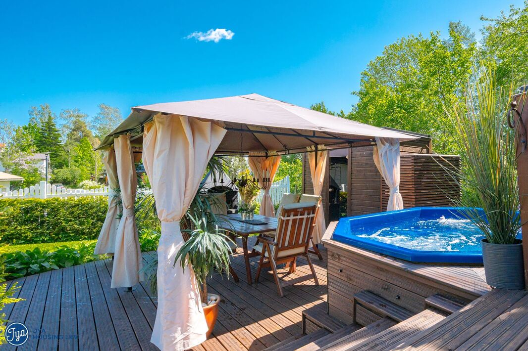 Koti sijaitsee omalla 1034 m² tontilla. Tätä taloa on säännöllisesti hoidettu ja kunnostettu (kuntotarkastus 17.5.2025 suoritettu). Talossa on toimiva pohjaratkaisu (asuinkerros sekä kellarikerros + harrastetila). Tilavassa olohuoneessa on varaava takka ja sinne saa sijoitettua isonkin ruokapöydän. Kaksi makuuhuonetta sijaitsee erikseen muutaman askelman päässä oleskelutiloista ja kolmas olohuoneen vieressä. Kodinhoitohuone ja kaksi erillistä kylpyhuonetta tekevät arjesta sujuvamman. Talosta löytyy kellarikerroksesta sähkösauna ja pihalla on vielä ympärivuotinen ulkoporeallas, puusauna + lämmin ulkosuihku ja terassit. Olohuoneesta pääsee katetun terassin kautta suojaisalle pihalle. Kaunis ja hyvin hoidettu puuhatarha pitää sisällään monivuotisia pihakasveja mm. luumupuu, syreenit, eri lajeja pioneita ja paljon muuta.