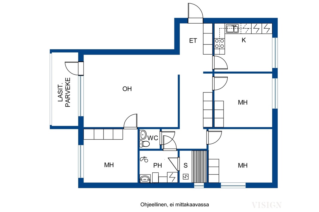 Huoneistoselitelmä | 4h, k, kph, wc, s, las. parveke |