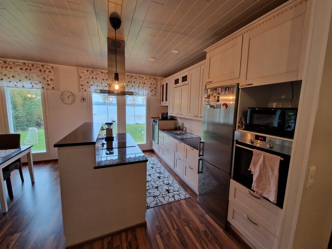 Puhdasvetisen Iisveden rannalla lähes uutta vastaava, upea ja persoonallinen koti. Valoisa, toimiva ja käytännöllinen pohjaratkaisu, jossa tilava ja valoisa olohuone yhdistyy keittiöön ja tilaa jakaa leivinuuni tuoden myös kodikasta lämpöä. Erillinen saunaosasto talossa luo puitteet vaikka rauhaisalle illanvietolle ja halutessasi voit myös lämmittää aivan uunituoreen rantasaunan rannan ääreltä. Hyvät apurakennukset, joista koiratalon kuuluminen kauppaan sovitaan tarvittaessa erikseen. Tule tutustumaan ja rakastumaan tähän hienoon kotiin. Soita ja sovitaan teille yksityinen esittely. Myyntiä hoitaa Olli Kattainen, puh. 044 444 0521.