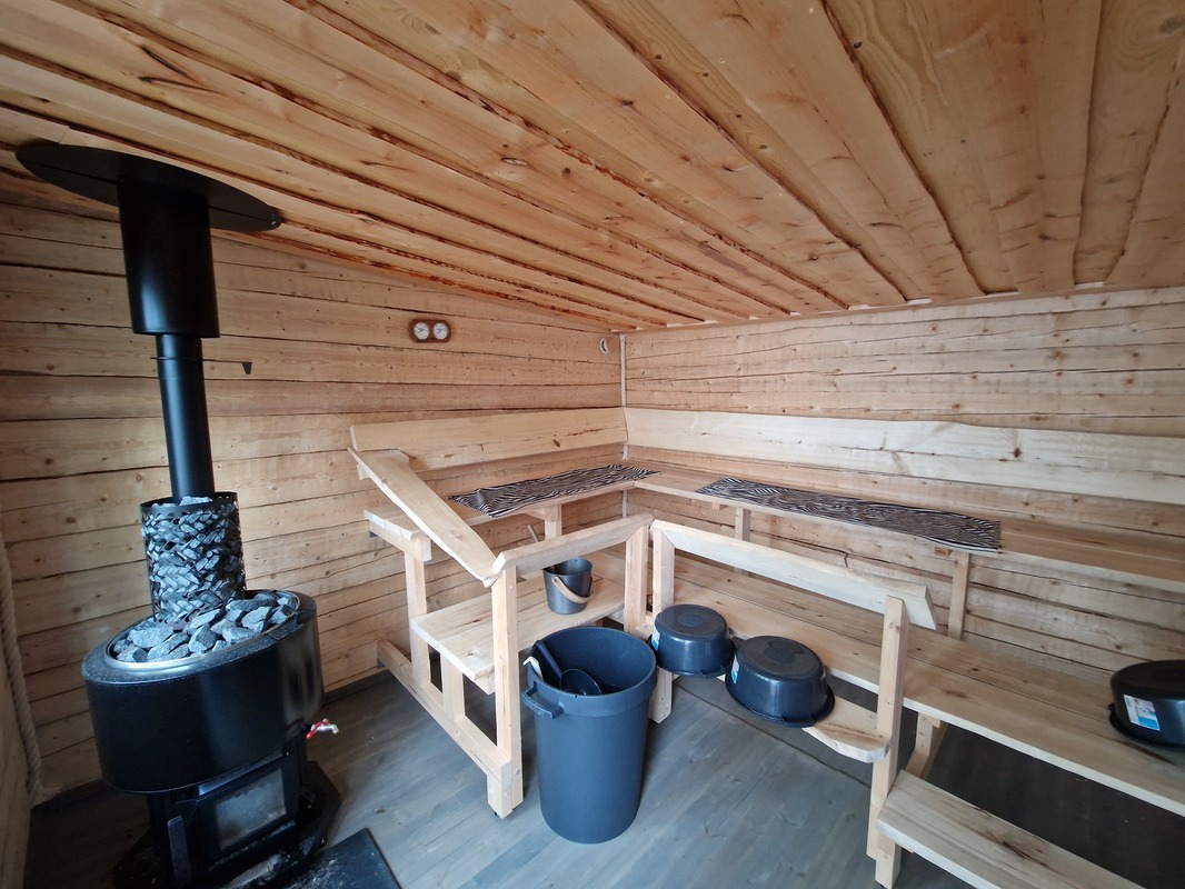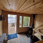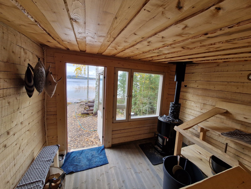 Saunan kuvaus | Sisäsaunan lisäksi erillinen uusi oleva iso rantasauna, jossa puukiuas. Tässä oleva tupaosa juuri valmistumassa. |