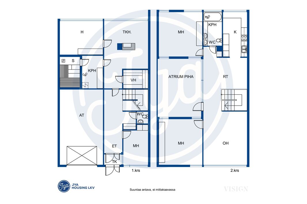 Huoneistoselitelmä | 6h, k, 2*kph, wc, sauna, atrium piha |