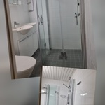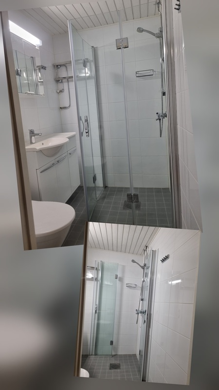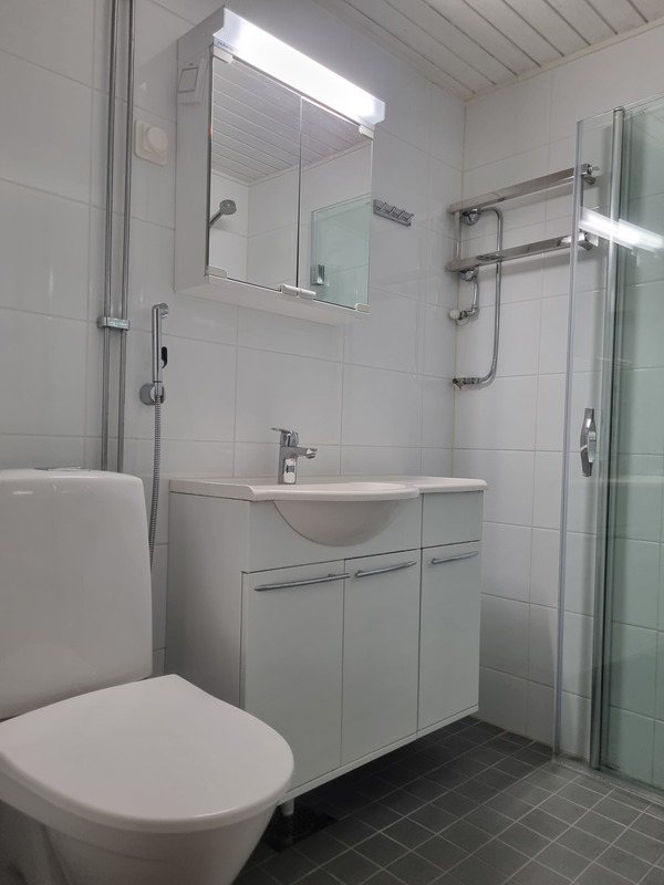 | Kylpyhuoneen kuvaus | Lattiat: klinkkeri // Seinät: Kaakeli // Katto: Paneeli |