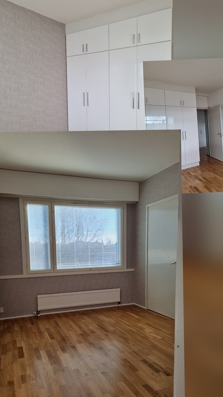 | Makuuhuoneen kuvaus | Makuuhuone 1 => Lattiat: parketti // Seinät: Tapetti // Katto: Maali Makuuhuone 2 => Lattiat: vinyyli // Seinät: Tapetti // Katto: Maali Makuuhuone 3 => Lattiat: parketti // Seinät: Tapetti // Katto: Maali |
