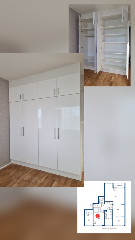 | Tehdyt remontit | Keittiön, eteistilan ja makuhuoneen kaapistojen uusiminen, parketin asennus makuuhuoneiden lattioihin sekä pyykinpesukoneen asentaminen keittiöön astianpesukoneen lisäksi, muutostyölupa 20.8.20218. Kylpyhuone/wc-tilan remontointi vesieristeen ja pintojen osalta, muutostyölupa 17.10.2018. Sähköt uusittu. |
