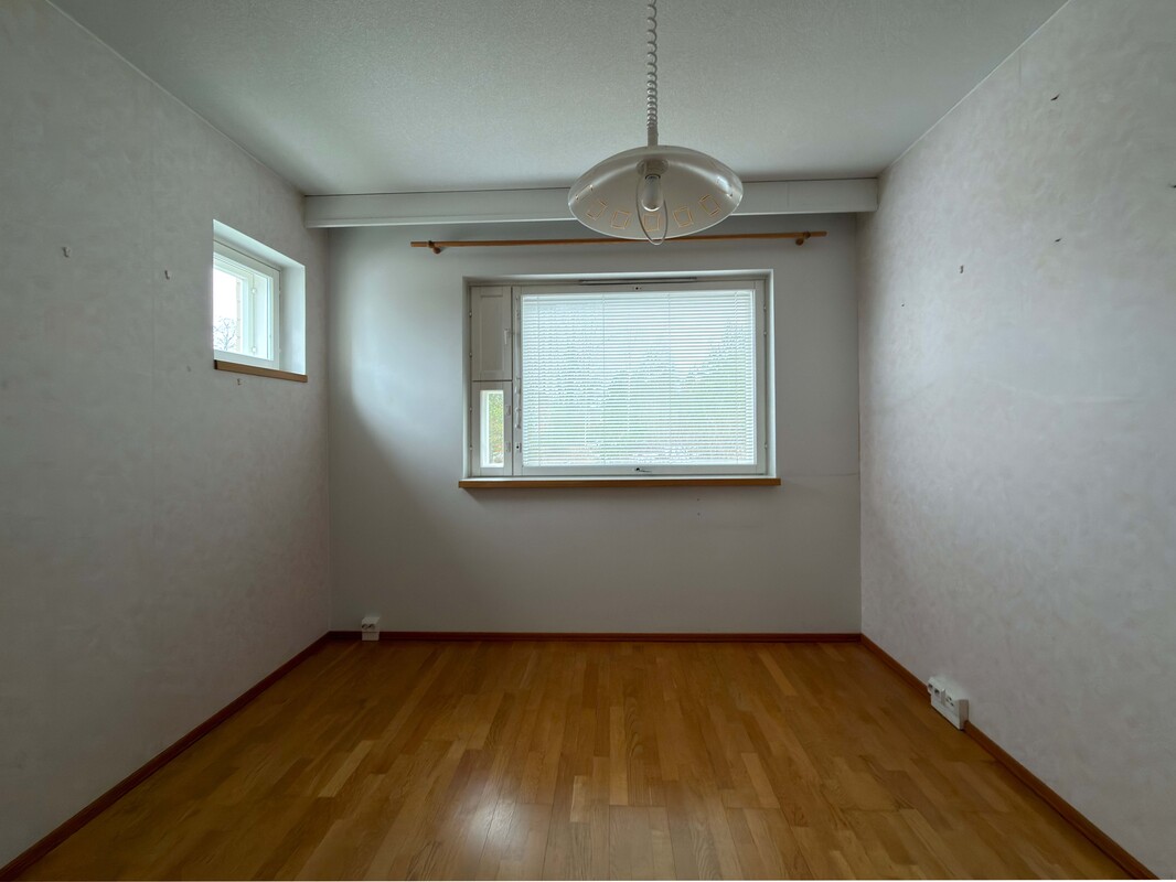Makuuhuoneen kuvaus Lattia: Parketti // Seinät: Tapetti // Katto: Roiskemaali Varusteet: - kaapit 5 kpl - ikkuna + yläikkuna