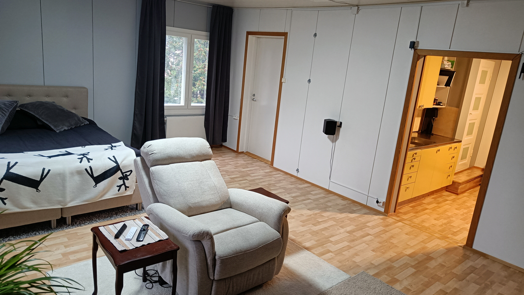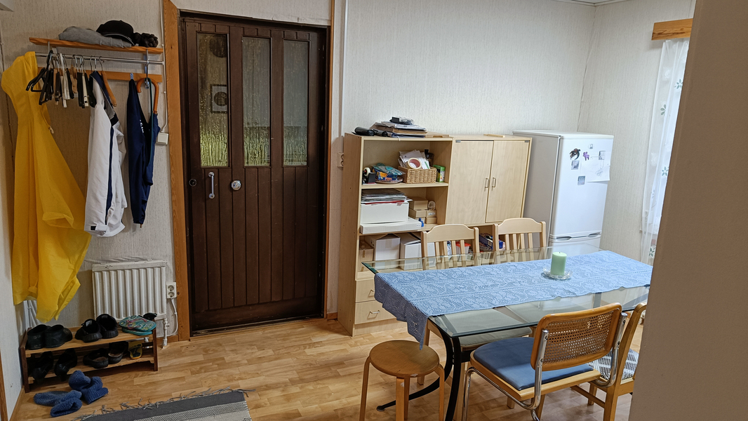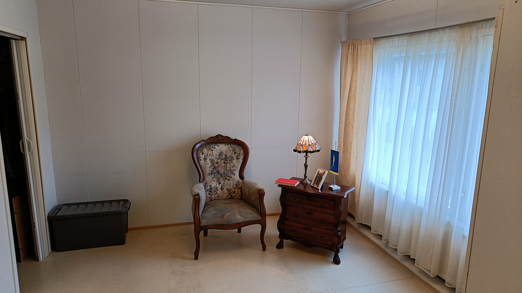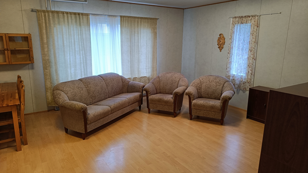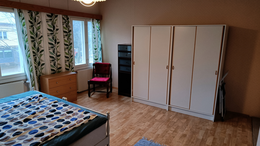 | Makuuhuoneen kuvaus | HUONEISTO 1. (1. kerros) Lattia: Muovimatto// Seinät:Halltex // Katto: Halltex Varusteet: - vesikiertopatteri - kaapistot (2 kpl) HUONEISTO 1. (2. kerros) (Ei makuuhuonetta) HUONEISTO 2. (1. kerros) (Ei makuuhuonetta) HUONEISTO 3. (2. kerros) Makuuhuone 1. Lattia: Muovimatto // Seinät: Lastulevy // Katto: Pinkopahvi Varusteet: - vesikiertopatteri - kaapistot (4 kpl) + yläkaapit (4 kpl) Makuuhuone 2. Lattia: Muovimatto // Seinät: Tapetti // Katto: Halltex Varusteet: - vesikiertopatteri |