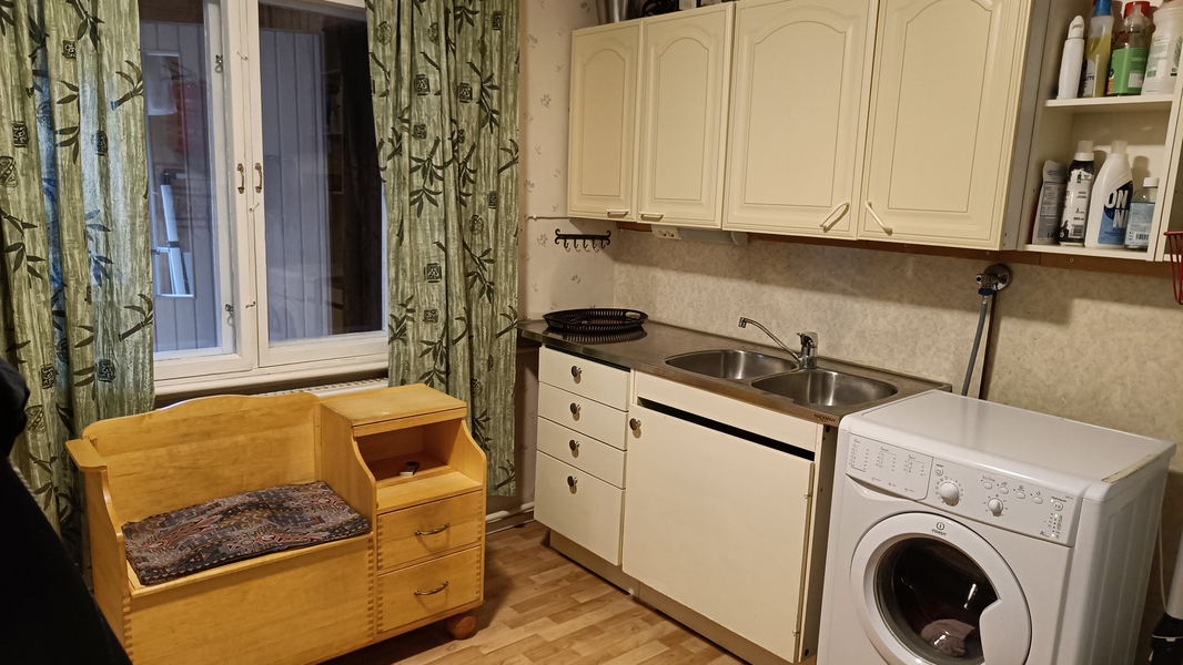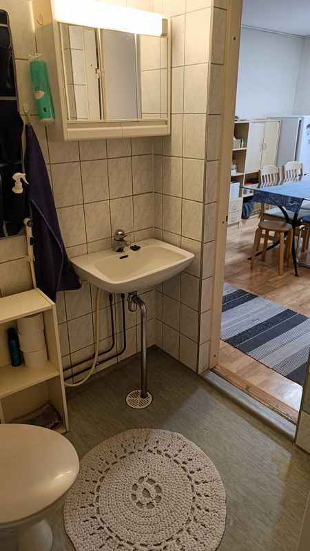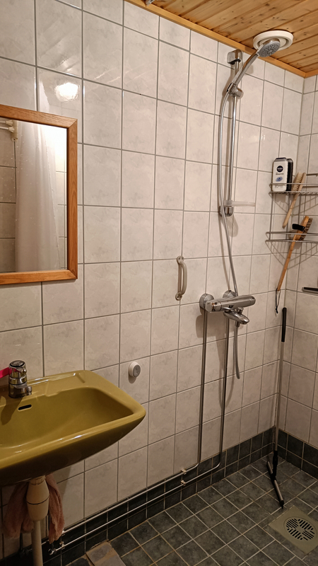 | Kylpyhuoneen kuvaus | HUONEISTO 1. 2. kerros Ei kylpyhuonetta, pesuhuonetta HUONEISTO 2. (1. kerros) Pesuhuone Lattia: Muovimatto // Seinät: Kaakeli // Katto: Hirsipaneeli Varusteet: - suihku HUONEISTO 3. (2. kerros) Kylpyhuone Lattia: Muovimatto // Seinät: Kaakeli // Katto: Petolevy Varusteet: - pyykinpesukoneliitäntä - lavuaari - peilikaappi - suihku - wc-istuin |