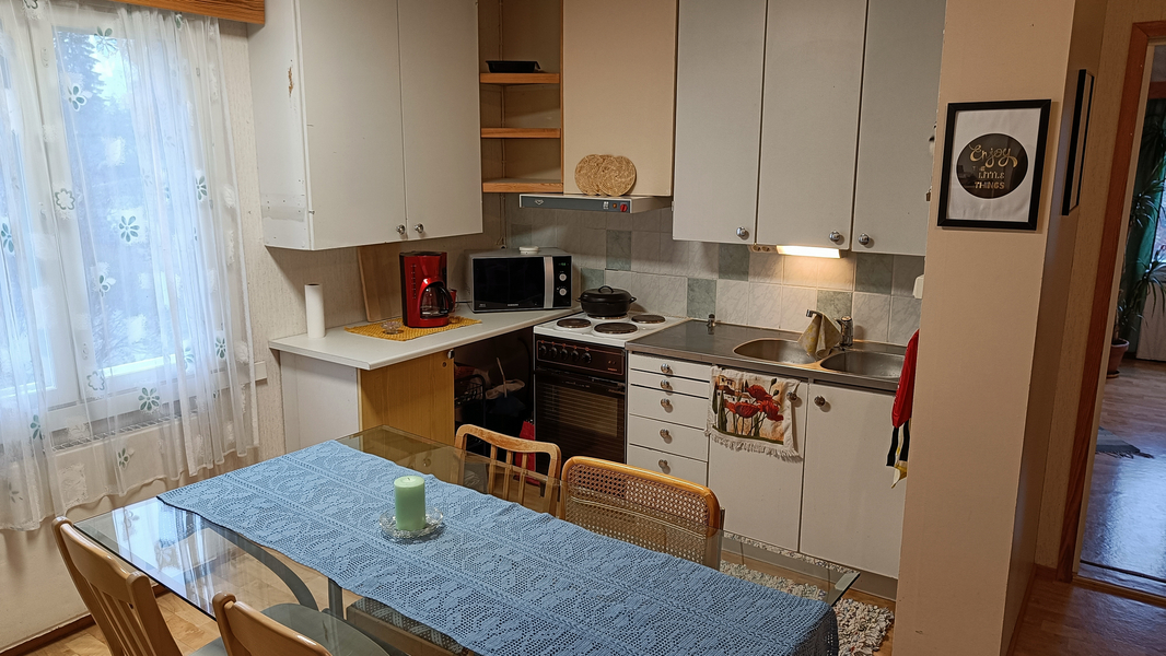 | Keittiön varustelu | HUONEISTO 1. 1. kerros Lattia: Laminaatti // Seinät: Tapetti // Katto: Halltex Varusteet: - kaapistot - työtasot - astianpesukone (600 mm) - tiskitaso (1:llä altaalla) - keraaminen liesi (uuni (500 mm) - liesituuletin (500 mm) 2. kerros Lattia: Muovimatto // Seinät: Halltex // Katto: Halltex Varusteet: - kaapistot - tiskitaso (2:lla altaalla) - ovi komeroon HUONEISTO 2. (1. kerros) Lattia: Muovimatto // Seinät: Halltex // Katto: Halltex Varusteet: - kaapistot - työtasot - jääkaappi - hella (4-levyinen9/uuni (600 mm) - liesituuletin (500 mm) - tiskitaso (2:lla altaalla) HUONEISTO 3. (2. kerros) Lattia: Muovimatto // Seinät: Tapetti // Katto: Lastulevy Varusteet: - kaapistot - työtaso - hella (4-levyinen)/uuni (500 mm) - leisituuletin (500 mm) - tiskitaso (2:lla altaalla) |