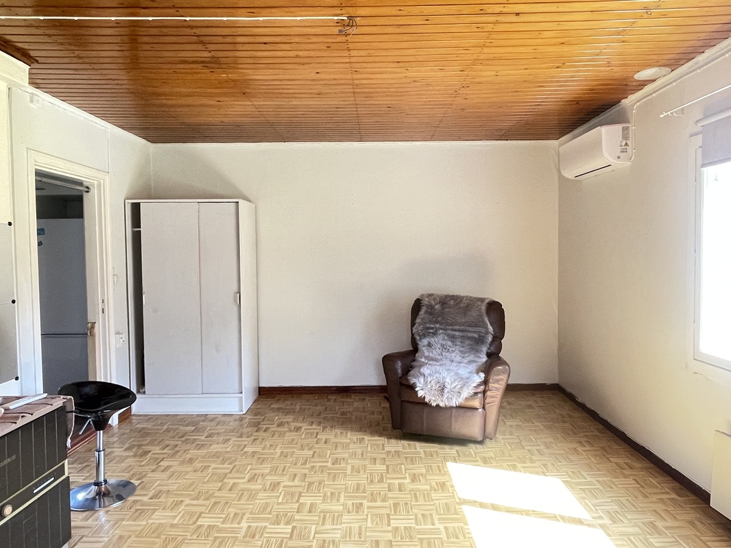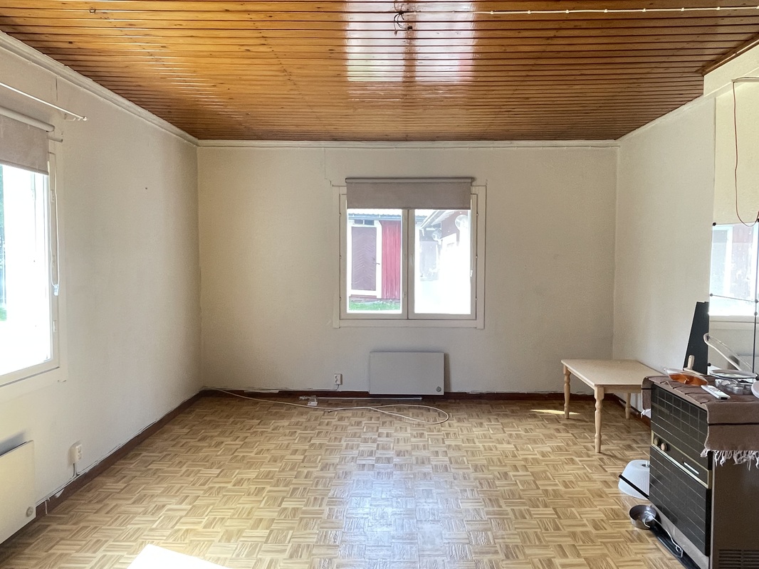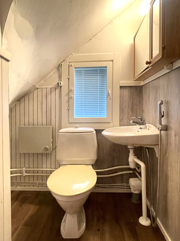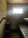 | Kylpyhuoneen kuvaus | Kylpyhuone/saunaosasto uusittu vuonna 2014. Kylpyhuone Lattia: Klinkkeri, Seinät: Kaakeli Katto: Paneeli varusteet: - suihku, - pyykinpesukoneliitäntä |