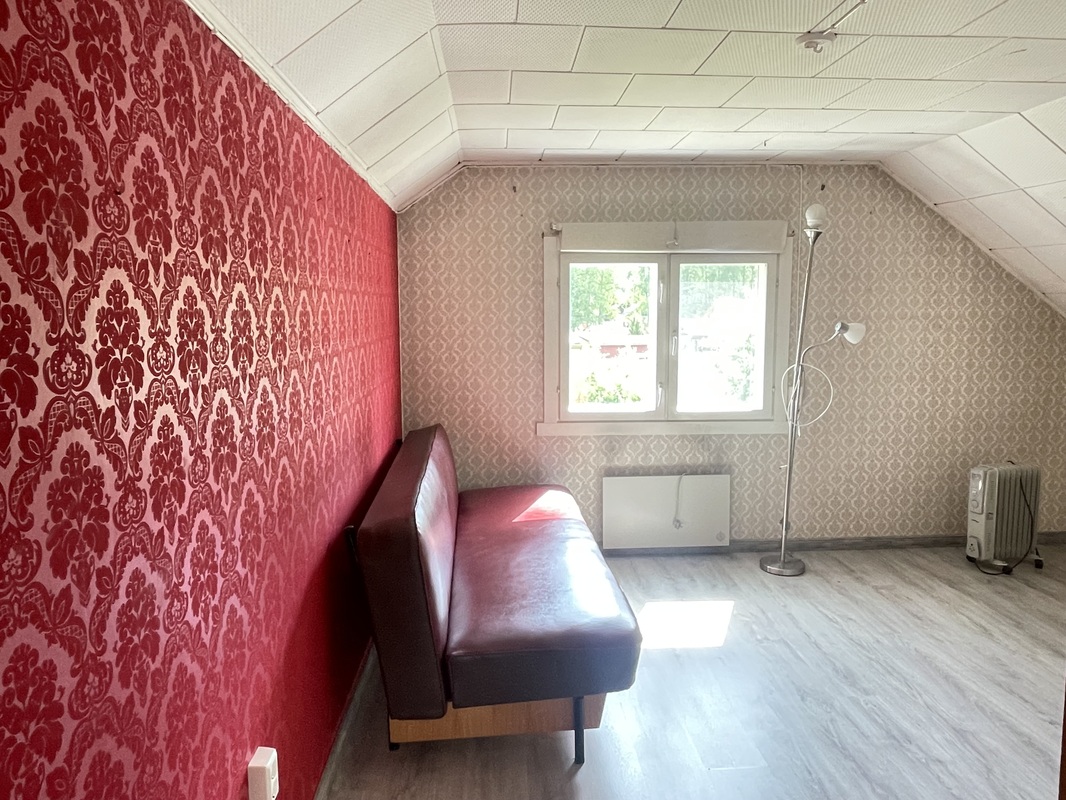 | Makuuhuoneen kuvaus | Lattia: Muovimatto Seinät: Tapetti Katto: Halltex Varusteet: - sähköpatteri |