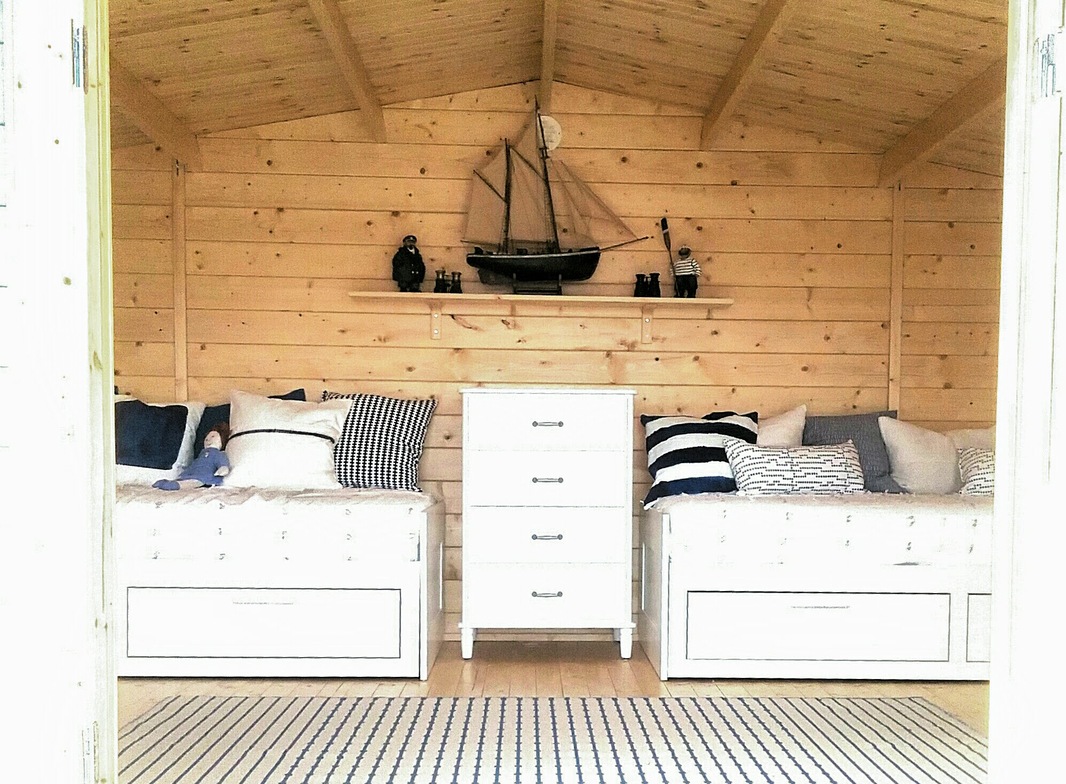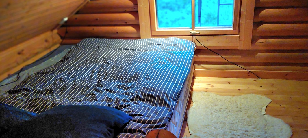 Makuuhuoneen kuvaus | Lattia: Puu // Seinät: Vaakapaneeli // Katto:Paneeli |