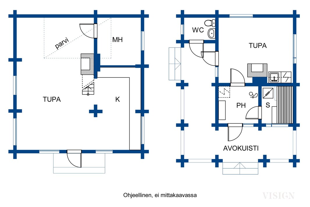 Huoneistoselitelmä | Terassi, tupa, k, mh, parvi |