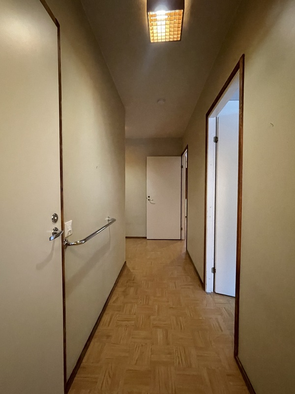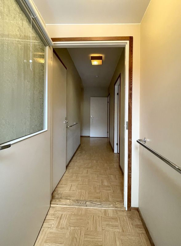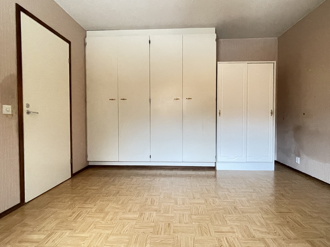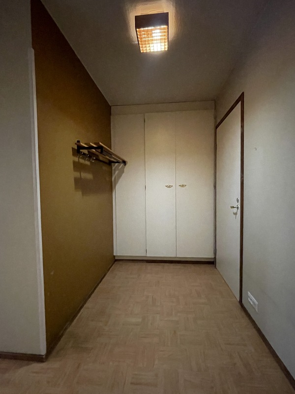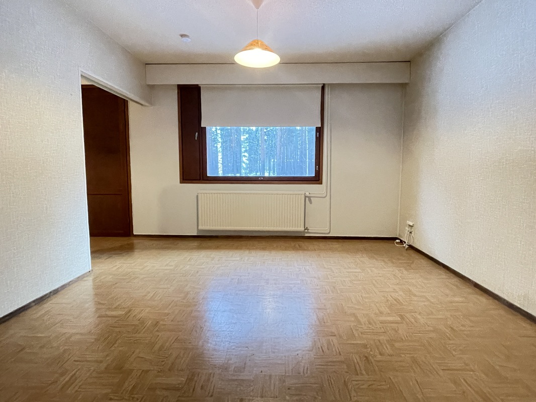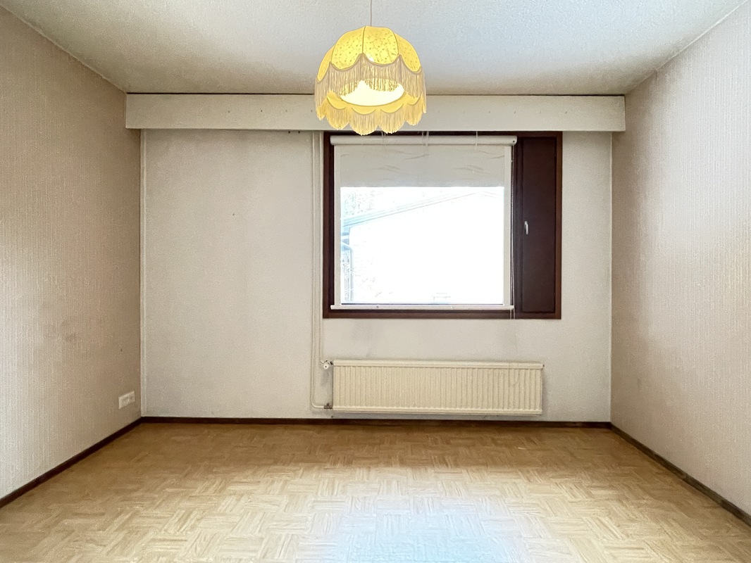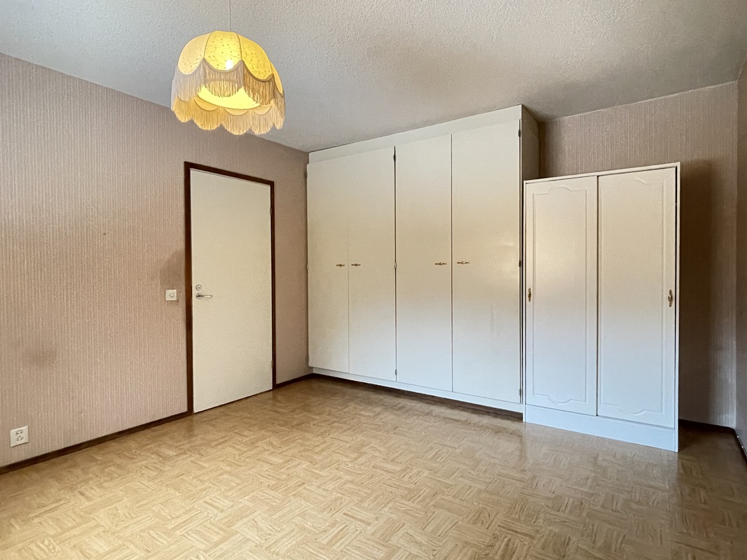 | Makuuhuoneen kuvaus | Lattia: Muovimatto // Seinät: Tapetti // Katto: Ruiskumaali Varusteet: - kaapistot (4 kpl), kiinteät - irtokaappi (kaksi ovinen) |