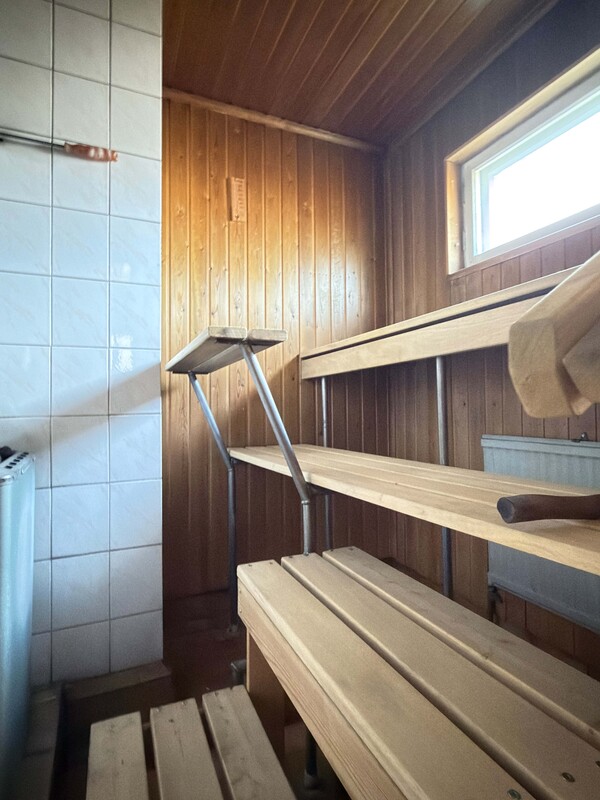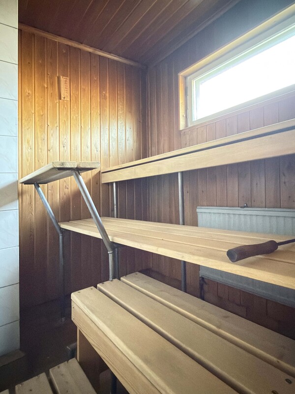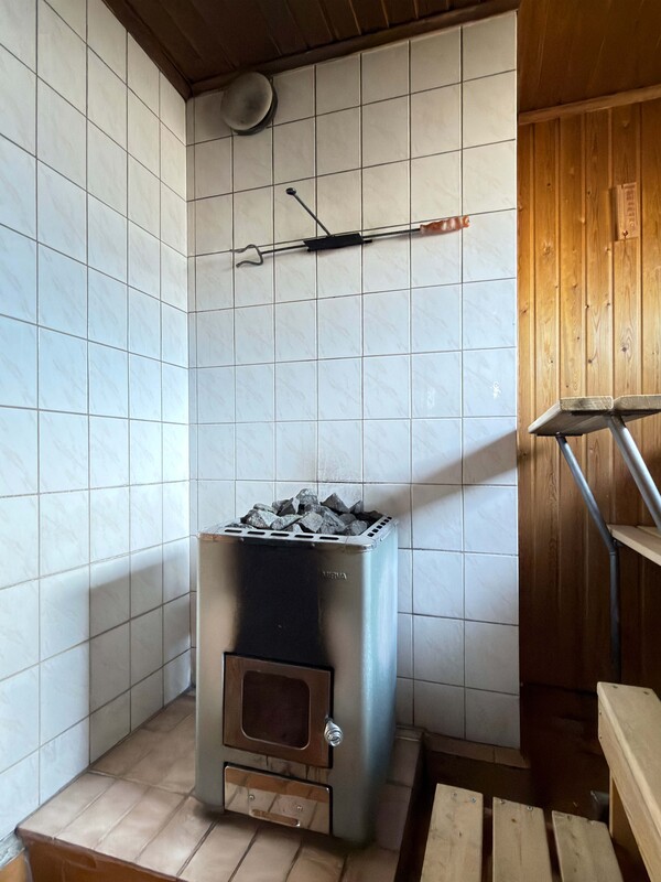 | Saunan kuvaus | Lattia: Klinkkeri // Seinät: Pystypaneeli // Katto: Paneeli Varusteet: - puukiuas - yläikkuna - lauteet - lattiakaivo |