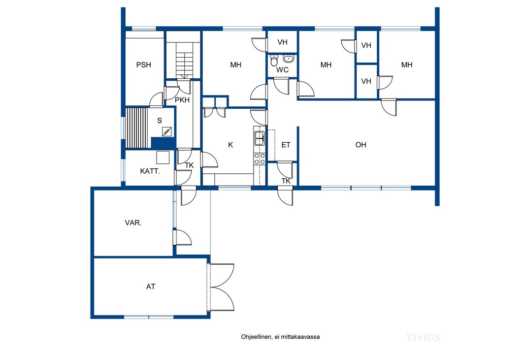 | Huoneistoselitelmä | Tk, ljh, et1, ph, s, k, et2, wc, 3mh, oh |